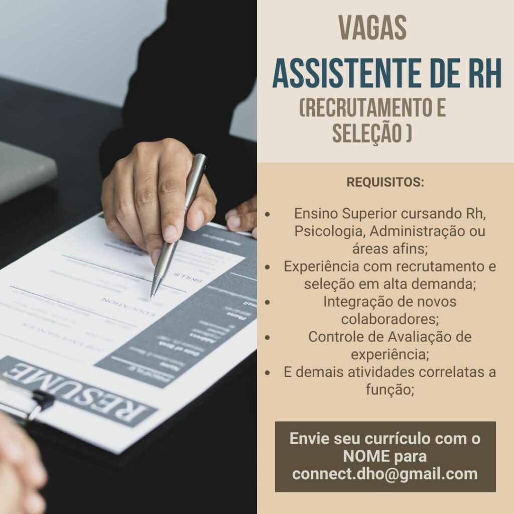 Empresa está selecionando Assistente de rh; Envie seu currículo!