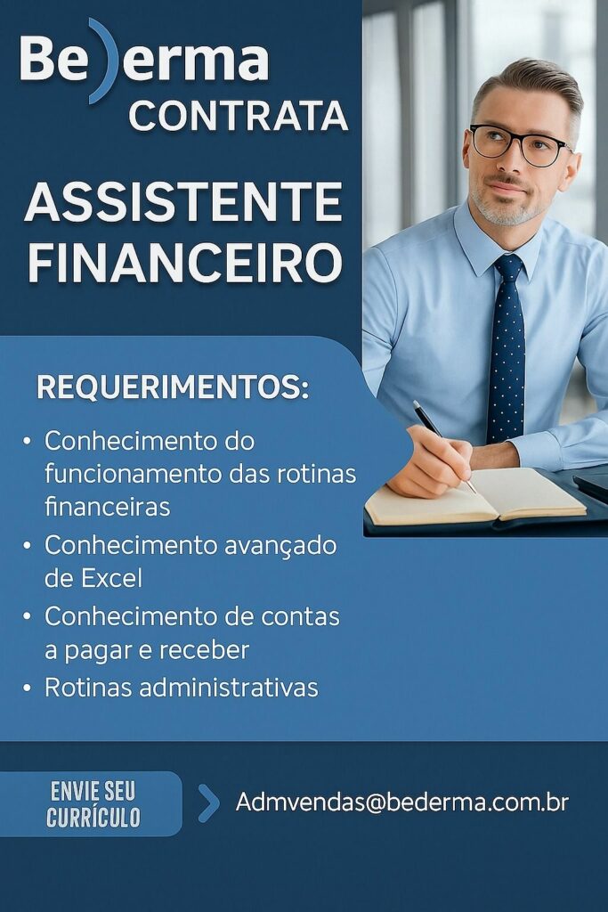 Empresa está selecionando Assistente financeiro; Envie seu currículo!