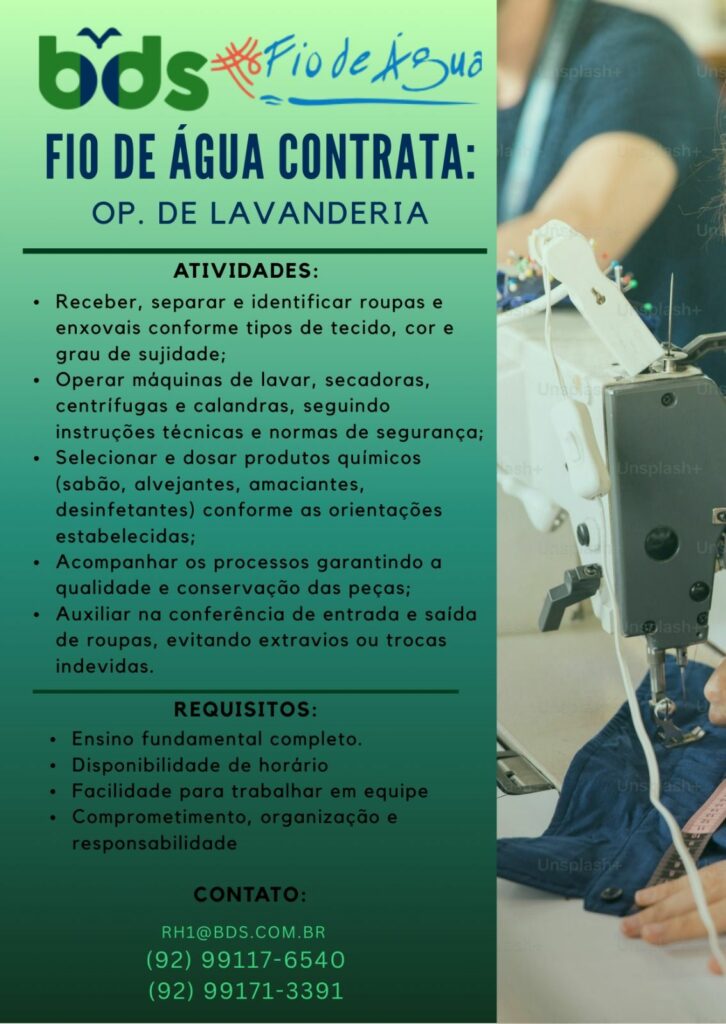 Empresa está selecionando Atendente de Lavanderia, Op. de lavanderia, Assistente de logística; Envie seu currículo!