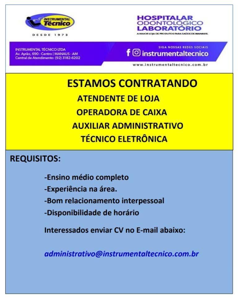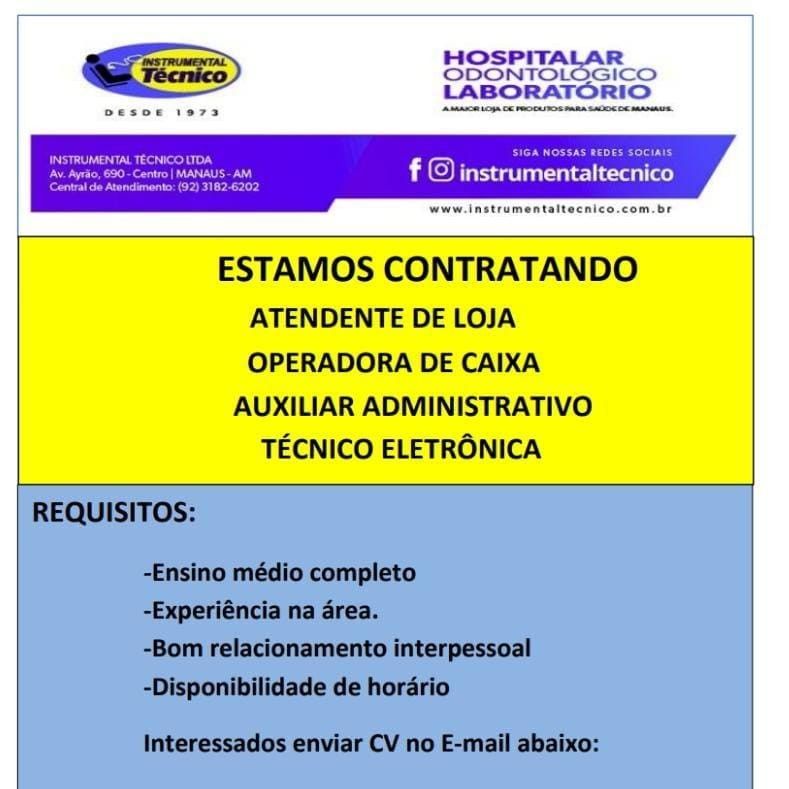 Empresa está selecionando Atendente de loja, Operadora de caixa, Auxiliar administrativo, Técnico eletrônica; Envie seu currículo!