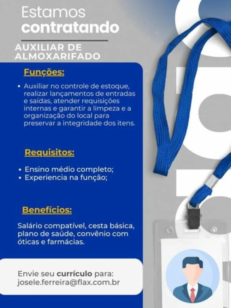 Empresa está selecionando Auxiliar de almoxarifado; Envie seu currículo!