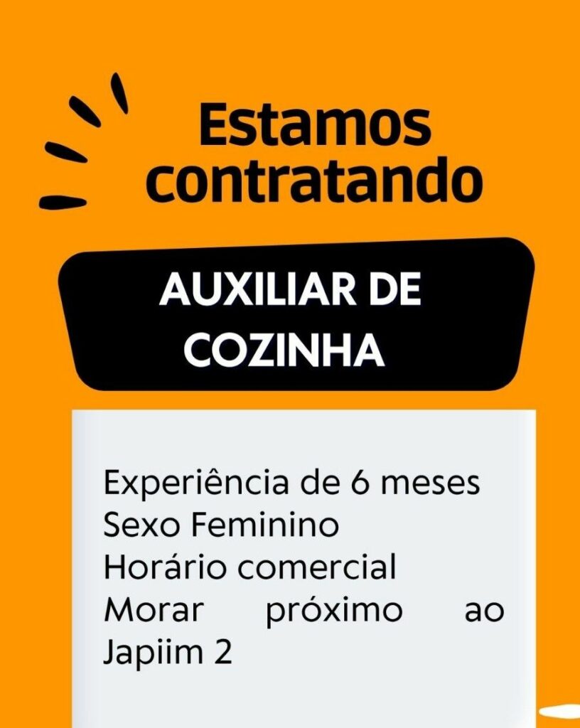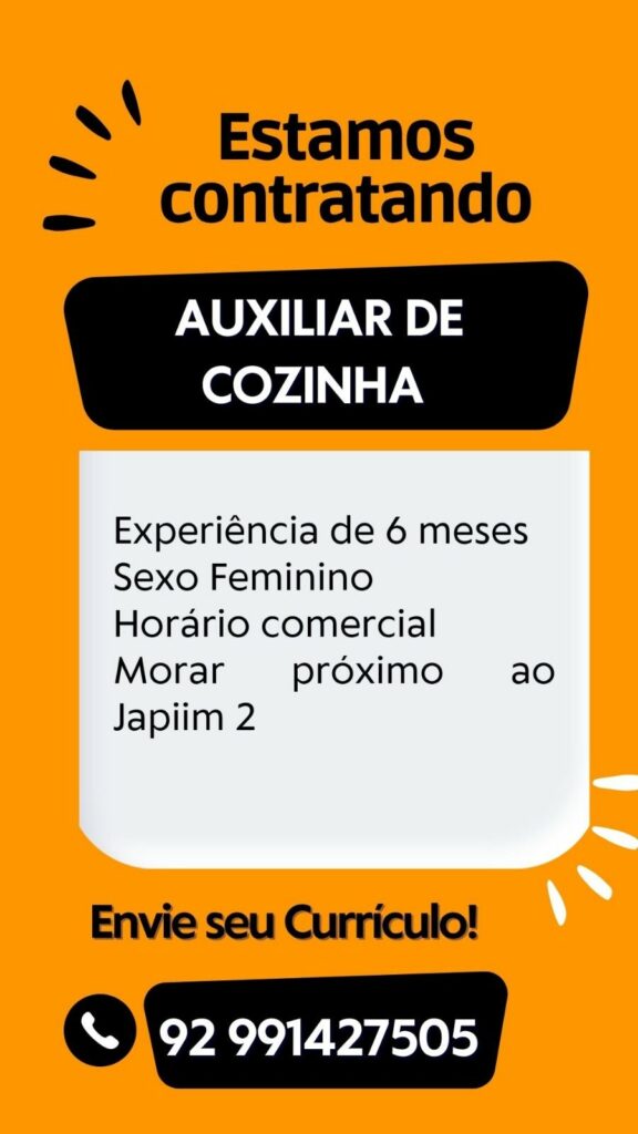 Empresa está selecionando Auxiliar de cozinha; Envie seu currículo!
