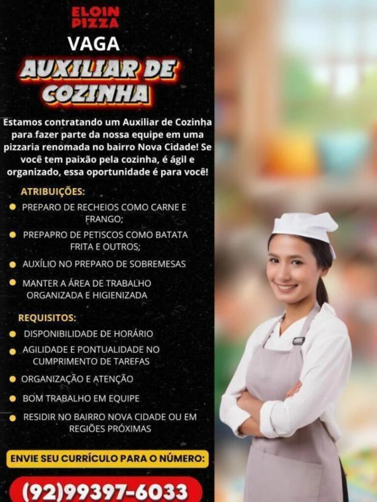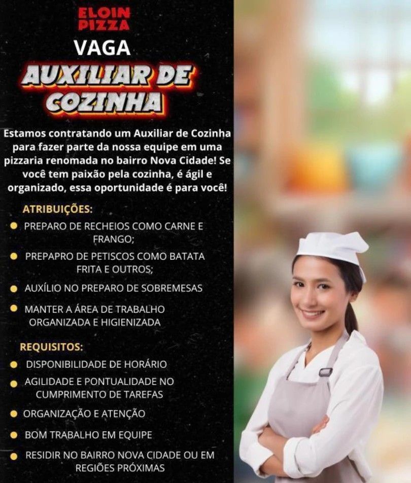 Empresa está selecionando Auxiliar de cozinha; Envie seu currículo!