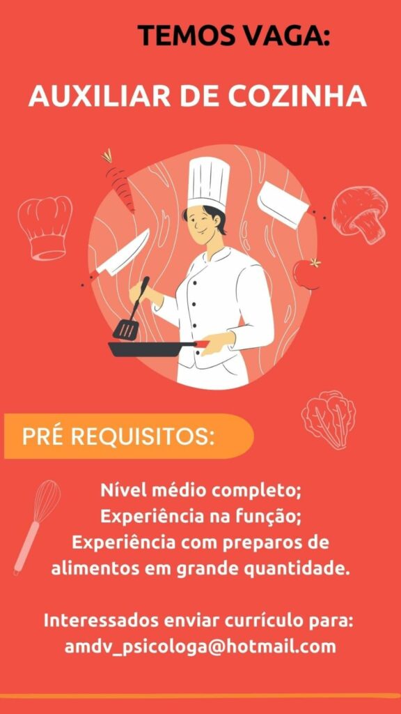 Empresa está selecionando Auxiliar de cozinha; Envie seu currículo!