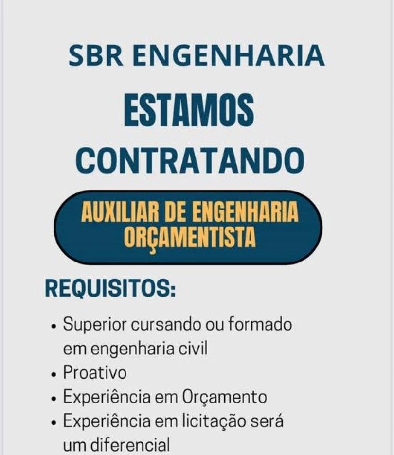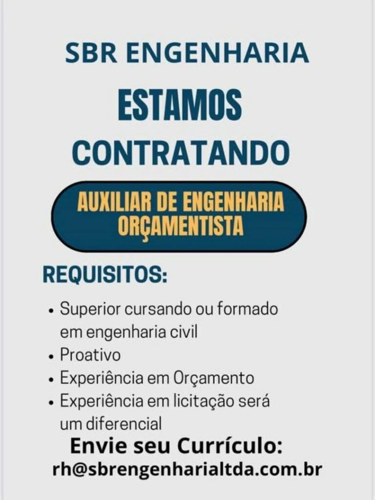 Empresa está selecionando Auxiliar de engenharia Orçamentista; Envie seu currículo!