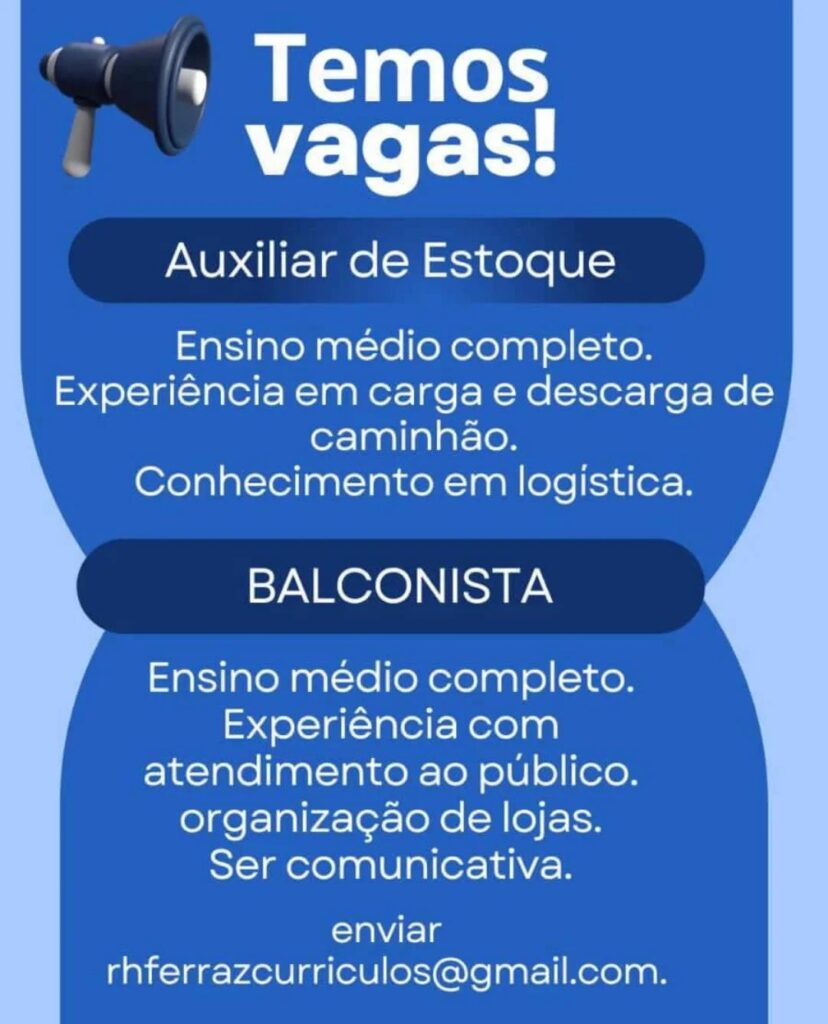 Empresa está selecionando Auxiliar de estoque, Balconista; Envie seu currículo!