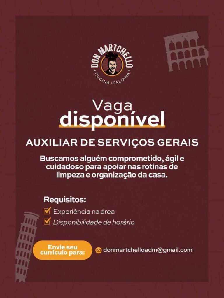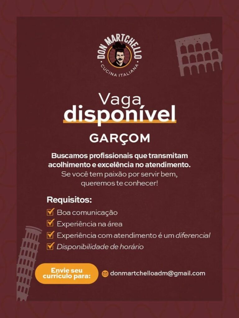 Empresa está selecionando Auxiliar de serviços gerais, Copeiro, Auxiliar de bar, Garçom; Envie seu currículo!