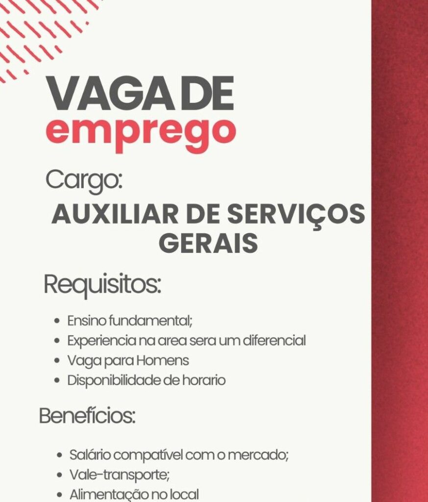 Empresa está selecionando Auxiliar de serviços gerais; Envie seu currículo!