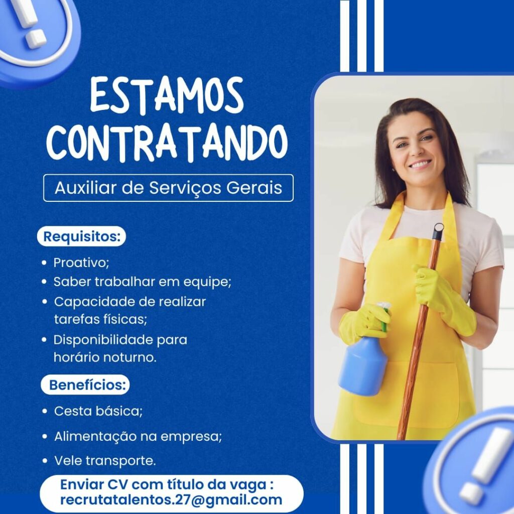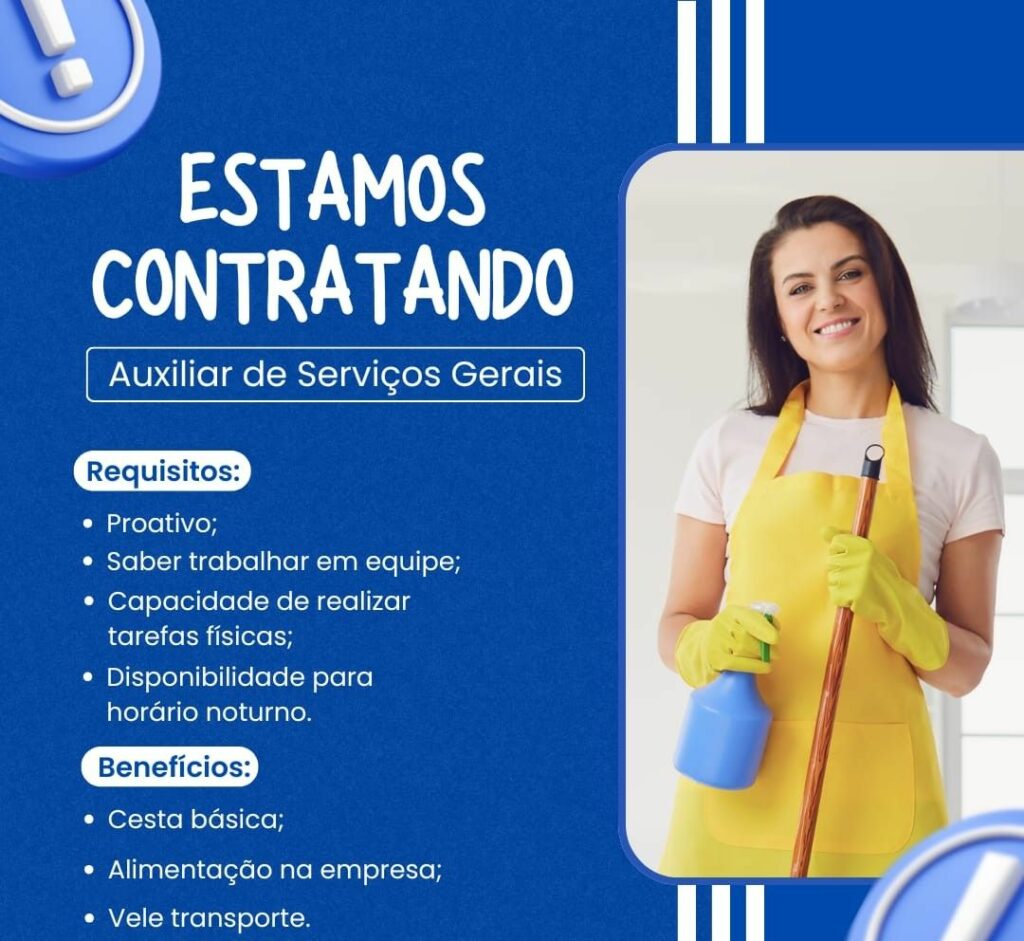 Empresa está selecionando Auxiliar de serviços gerais; Envie seu currículo!