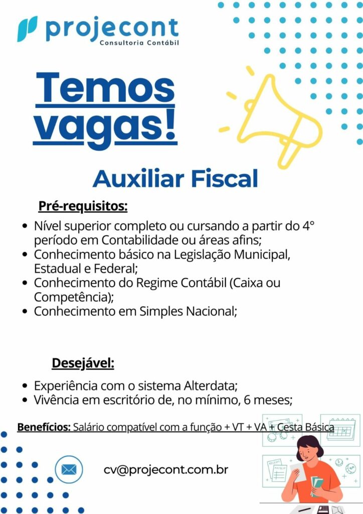 Empresa está selecionando Auxiliar fiscal; Envie seu currículo!