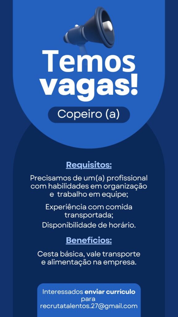 Empresa está selecionando Copeiro (a); Envie seu currículo!