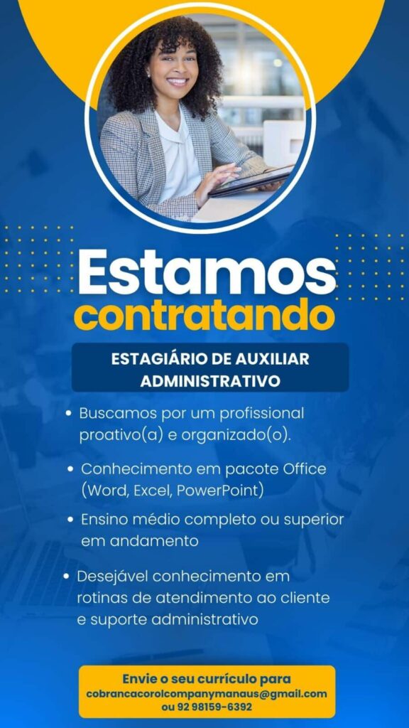 Empresa está selecionando Estagiário de auxiliar administrativo; Envie seu currículo!