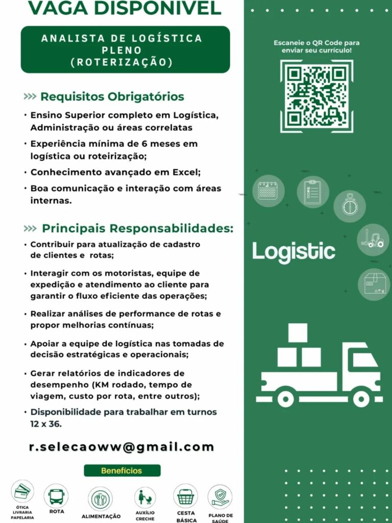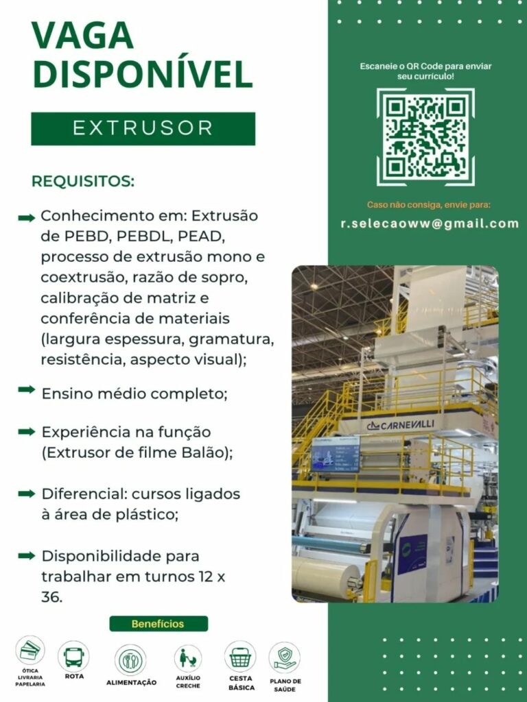 Empresa está selecionando Extrusor, Analista de logística pleno; Envie seu currículo!