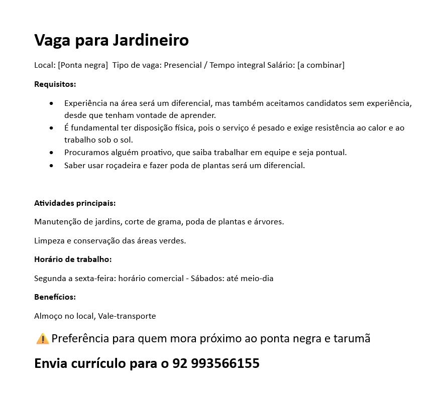 Empresa está selecionando Jardineiro; Envie seu currículo!