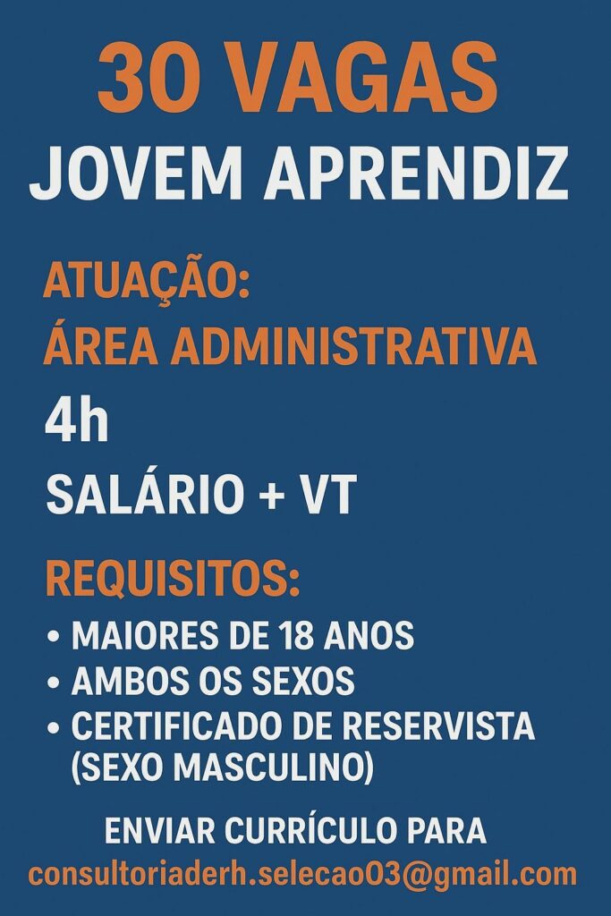 Empresa está selecionando Jovem Aprendiz (30 vagas); Envie seu currículo!