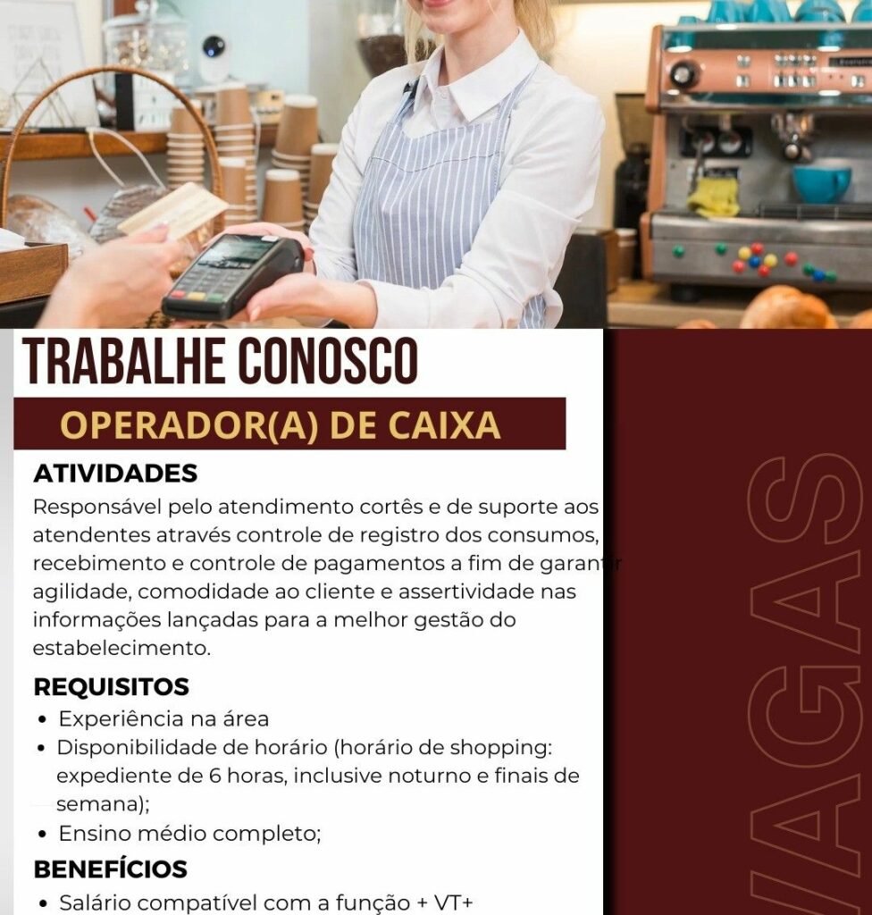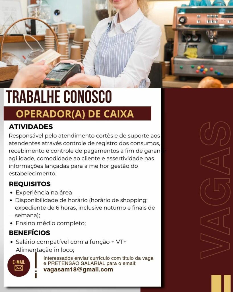 Empresa está selecionando Operador (a) de caixa; Envie seu currículo!