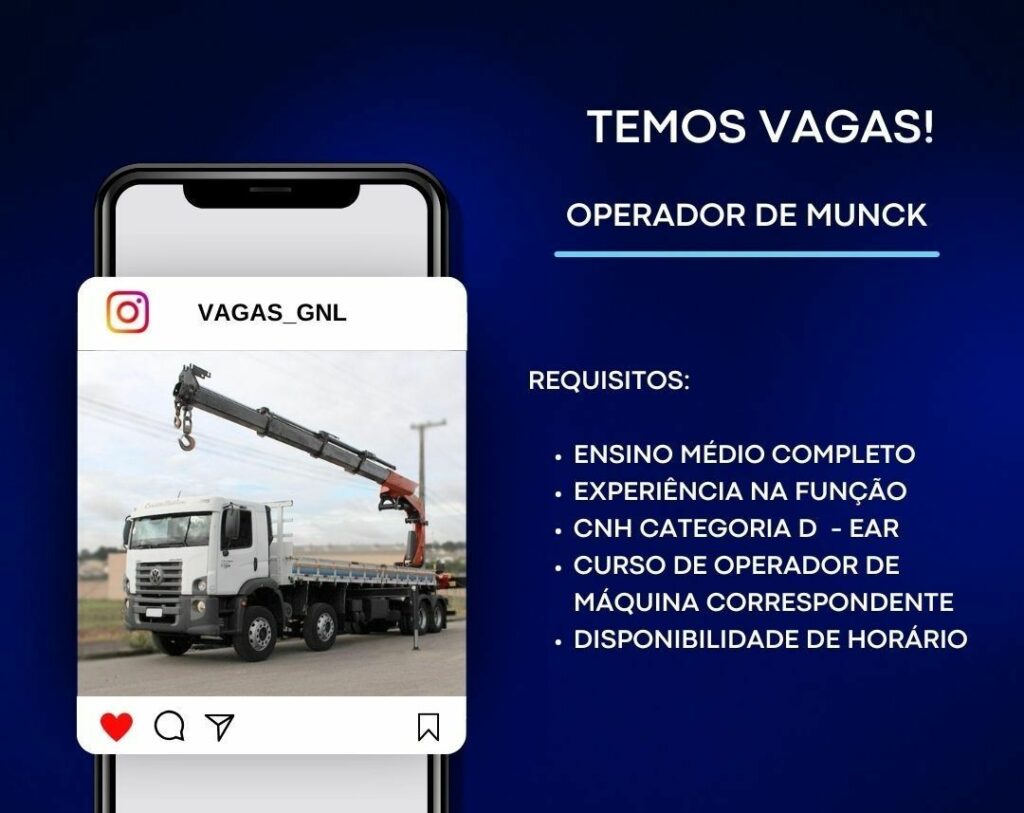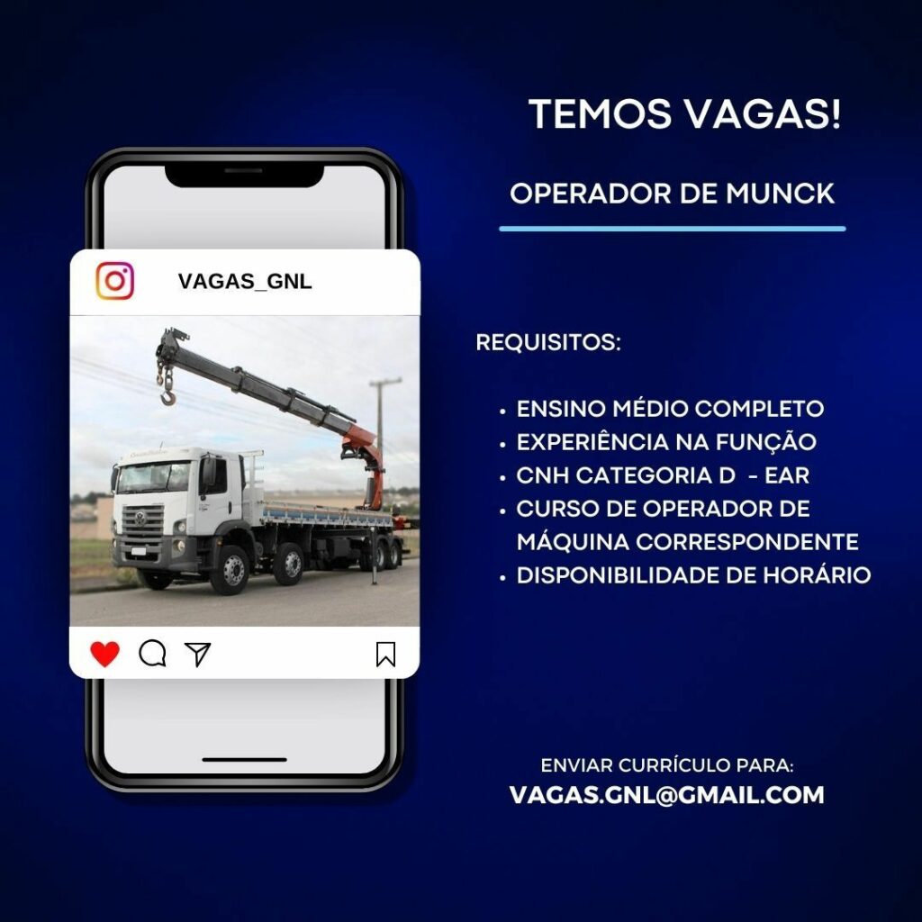 Empresa está selecionando Operador de munck; Envie seu currículo!