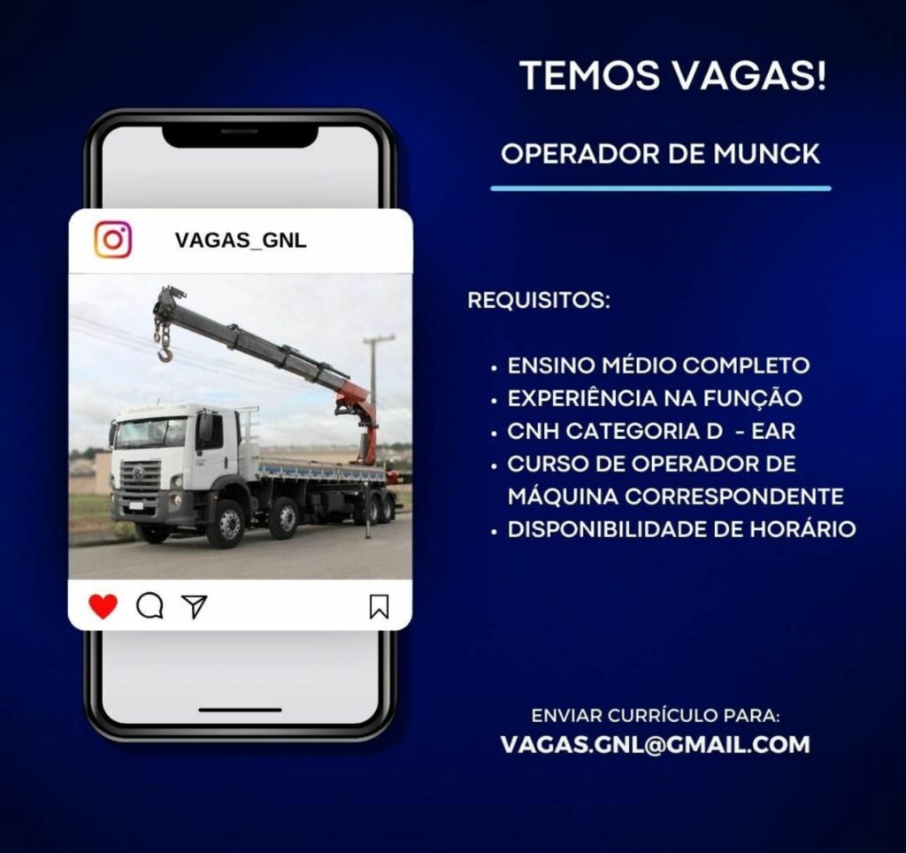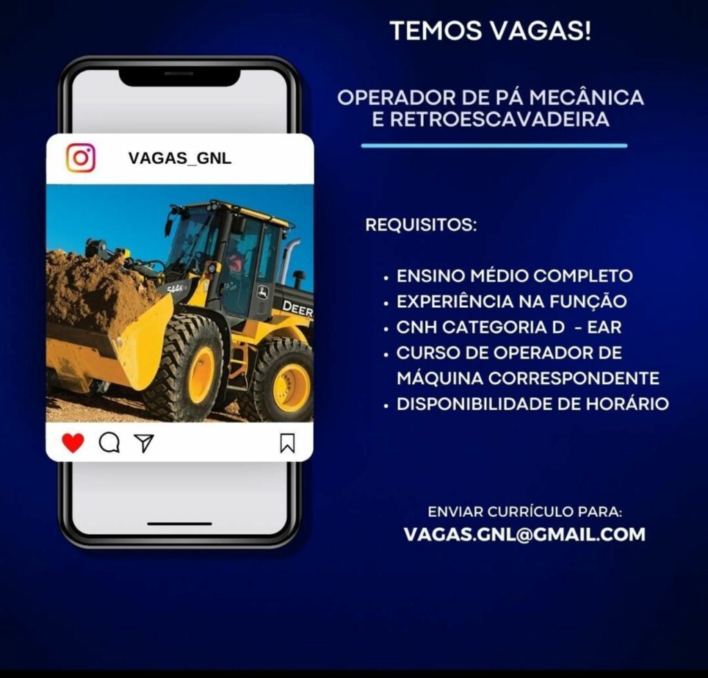 Empresa está selecionando Operador de munck, Operador de pá mecânica e retroescavadeira; Envie seu currículo!