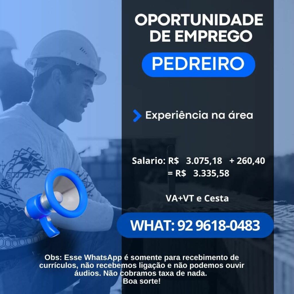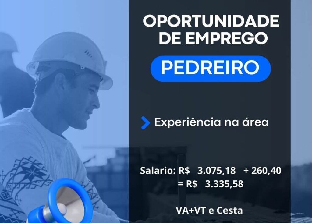 Empresa está selecionando Pedreiro; Envie seu currículo!