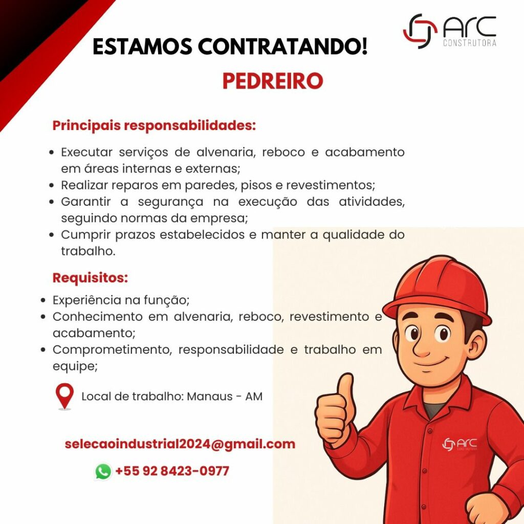 Empresa está selecionando Pedreiro; Envie seu currículo!
