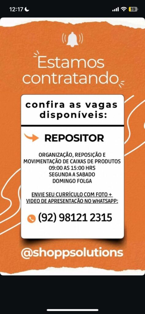 • Hospital Santa Júlia abre vaga para maqueiro em Manaus