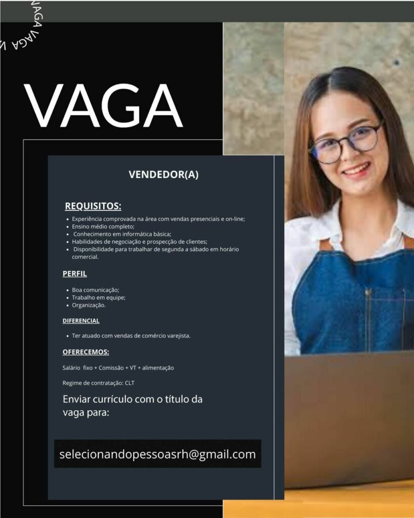 Empresa está selecionando Vendedor (a); Envie seu currículo!