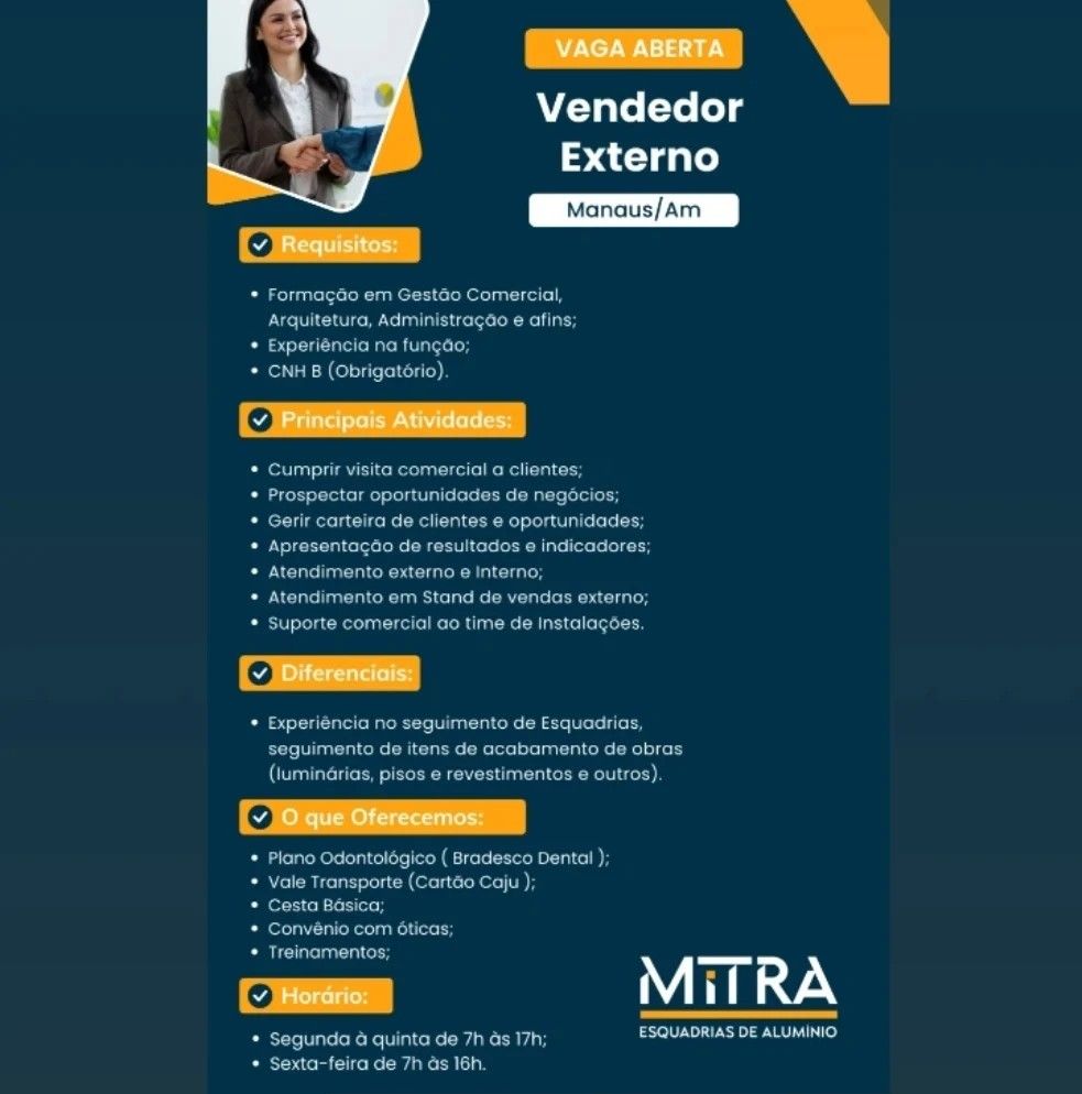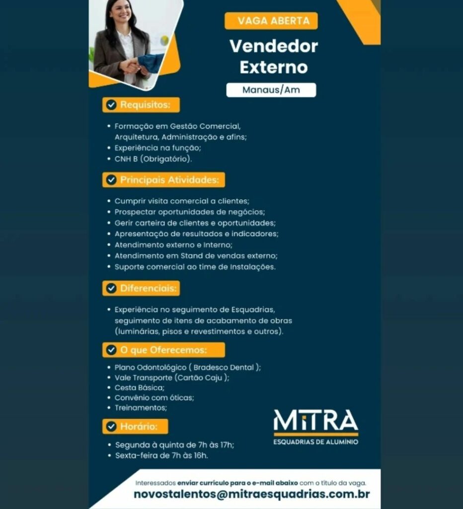 Empresa está selecionando Vendedor externo; Envie seu currículo!