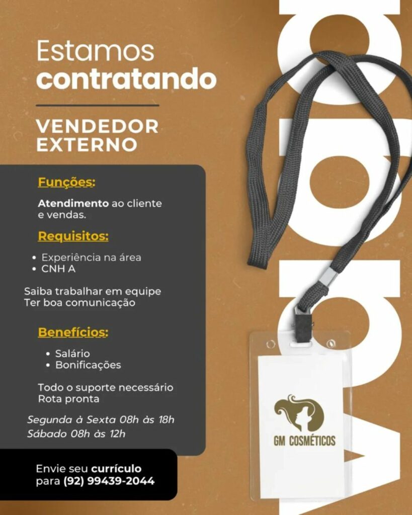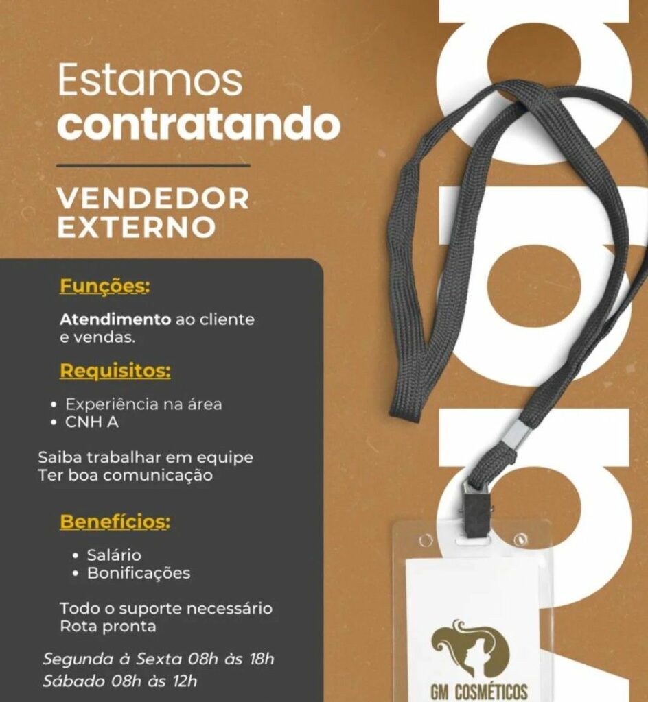 Empresa está selecionando Vendedor externo; Envie seu currículo!