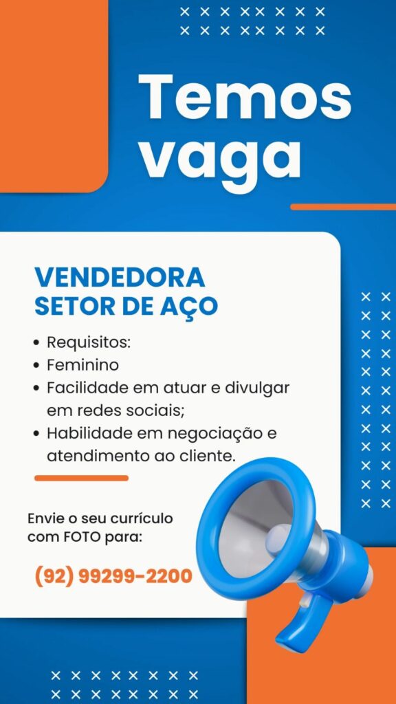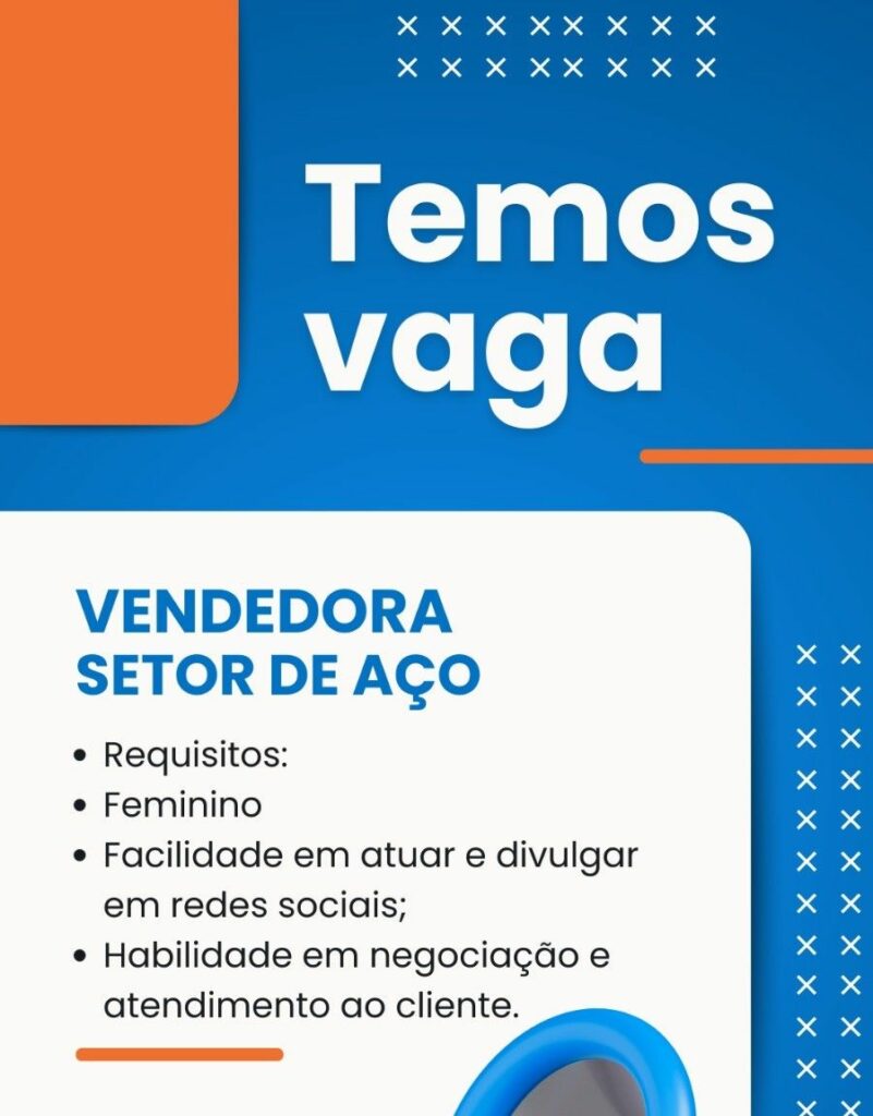 Empresa está selecionando Vendedora setor aço; Envie seu currículo!