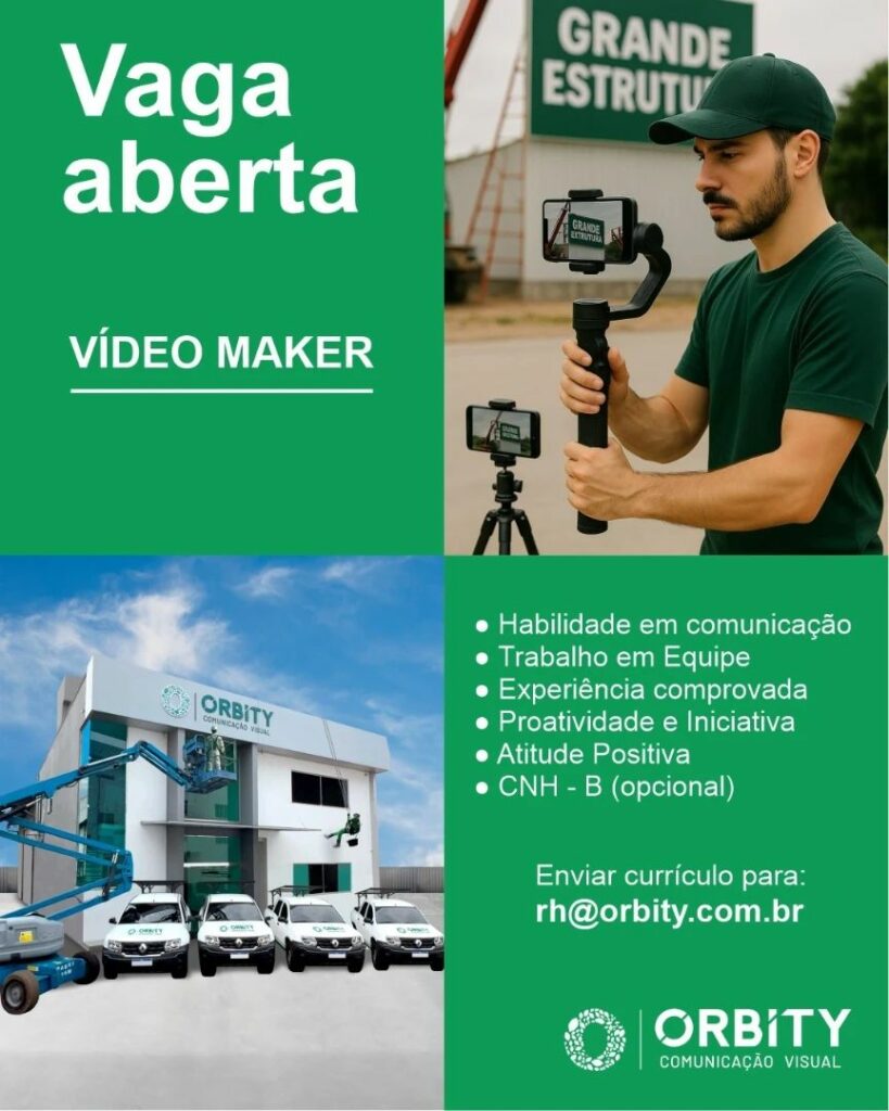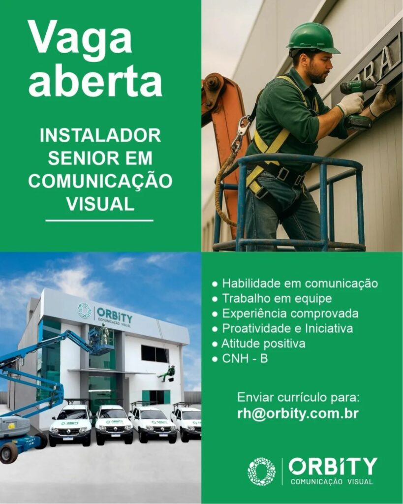 Empresa Orbity está selecionando Instalador senior em comunicação visual, Vídeo maker; Envie seu currículo!