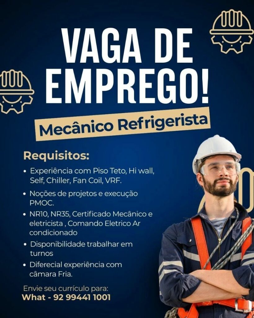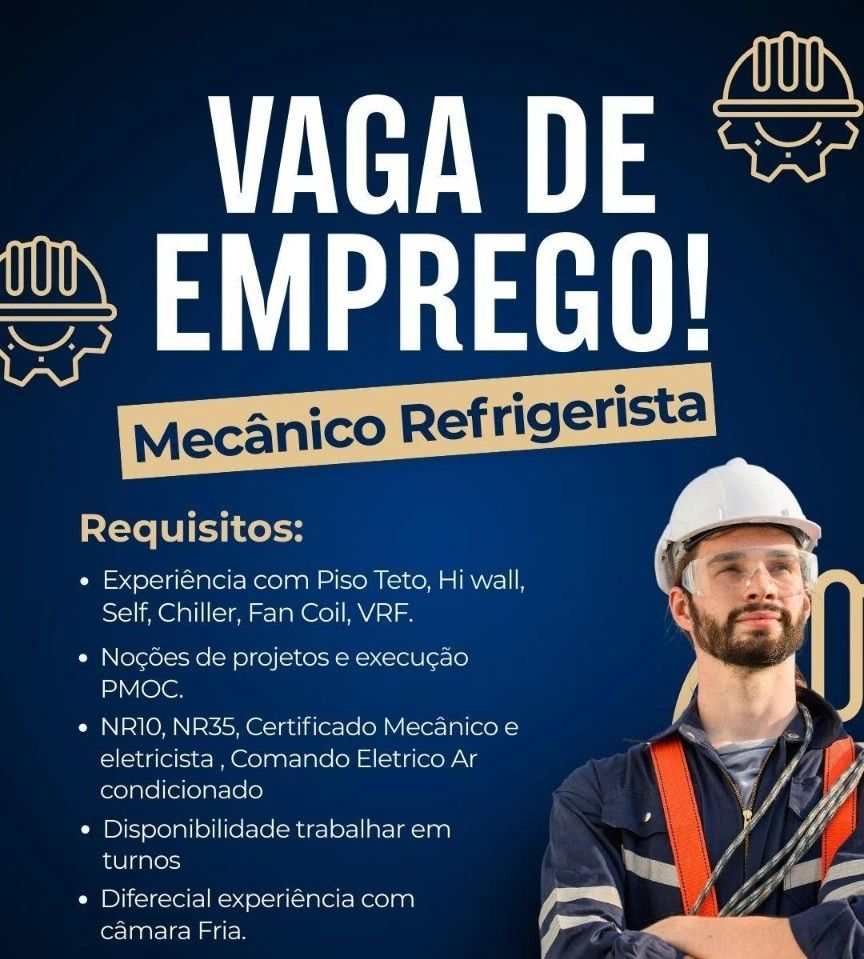 Empresa seleciona Mecânico Refrigerista; Envie seu currículo!
