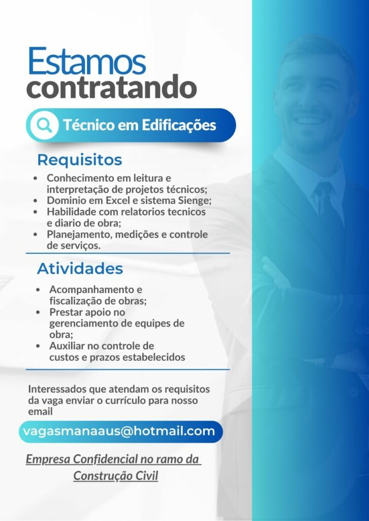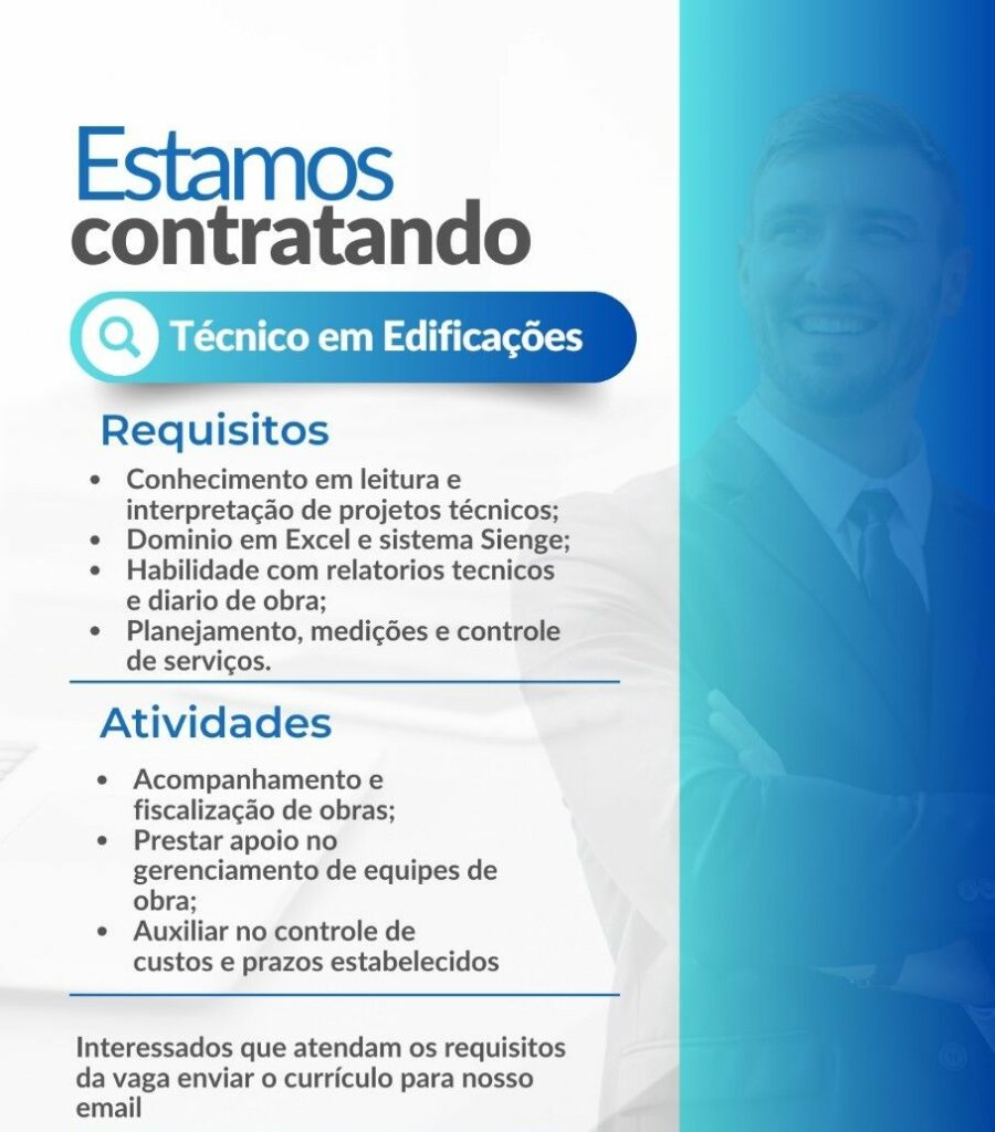 Empresa seleciona Técnico em Edificações; Envie seu currículo!
