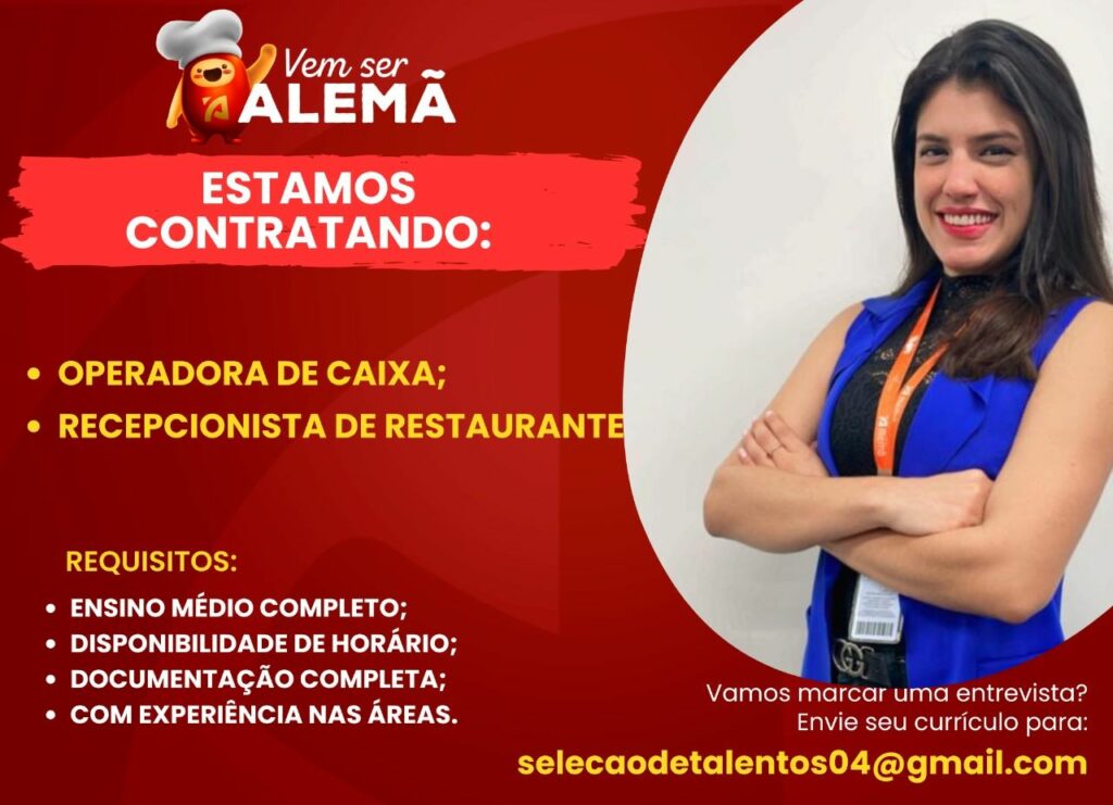Grupo Alemã seleciona Operadora de caixa, Recepcionista de restaurante; Envie seu currículo!