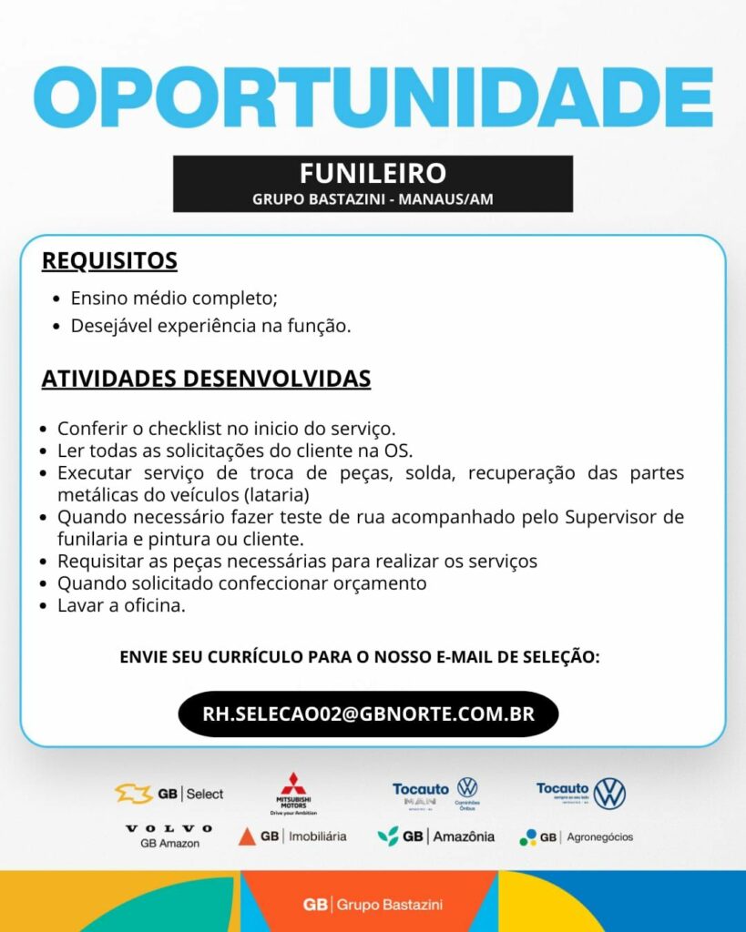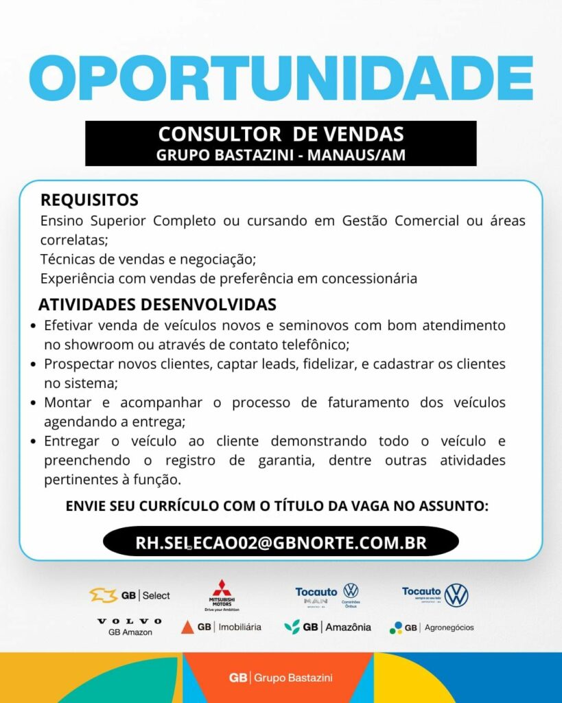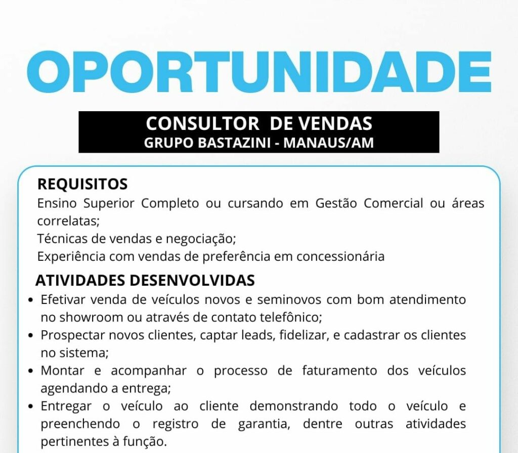 Grupo Bastazini seleciona Consultor de vendas, Funileiro; Envie seu currículo!
