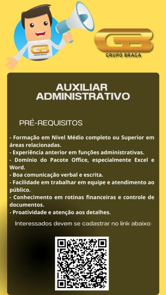 Grupo Braga seleciona Auxiliar administrativo; Envie seu currículo!