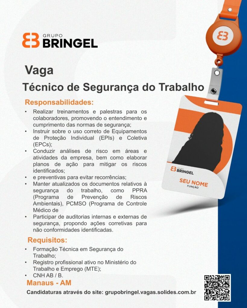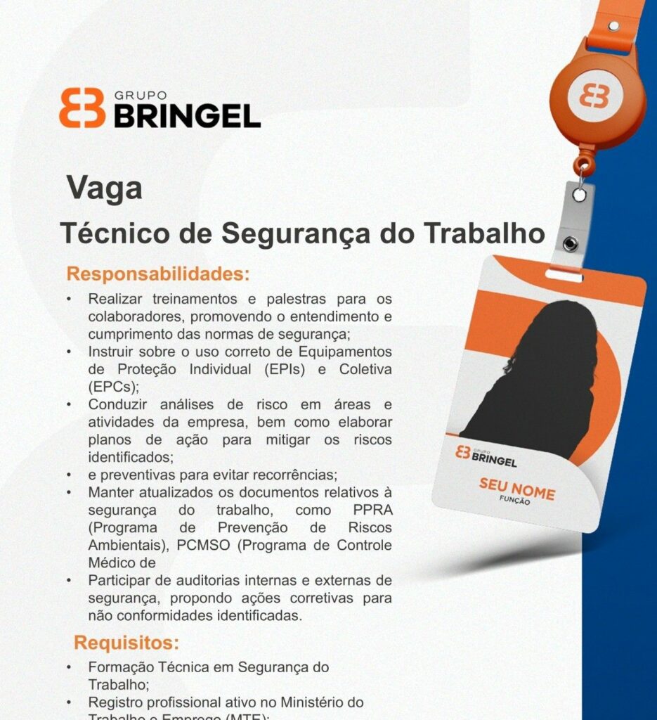 Grupo Bringel seleciona Técnico de segurança do trabalho; Envie seu currículo!