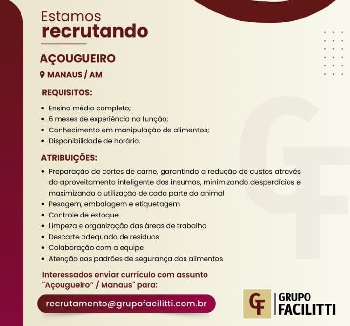 Grupo Facilitti seleciona Açougueiro; Envie seu currículo!
