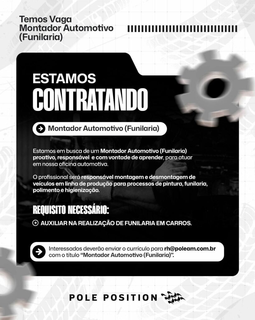Grupo Polision seleciona Auxiliar mecânica, Montador automotivo (funilaria); Envie seu currículo!