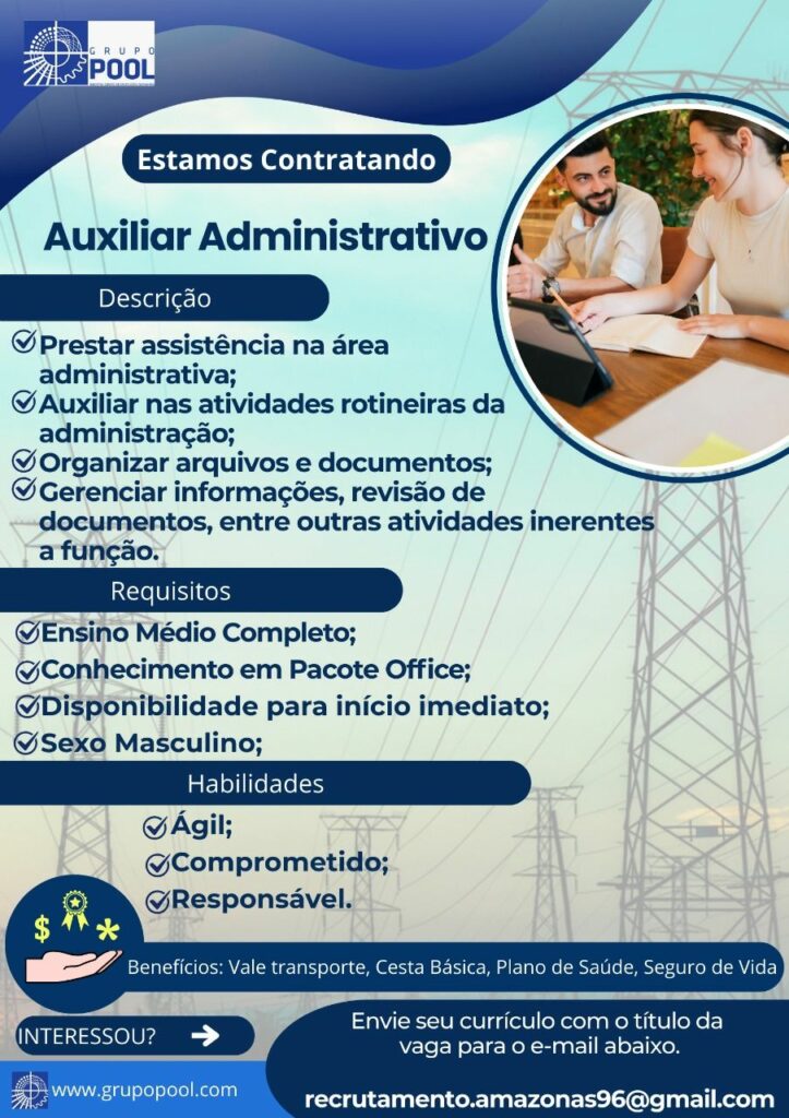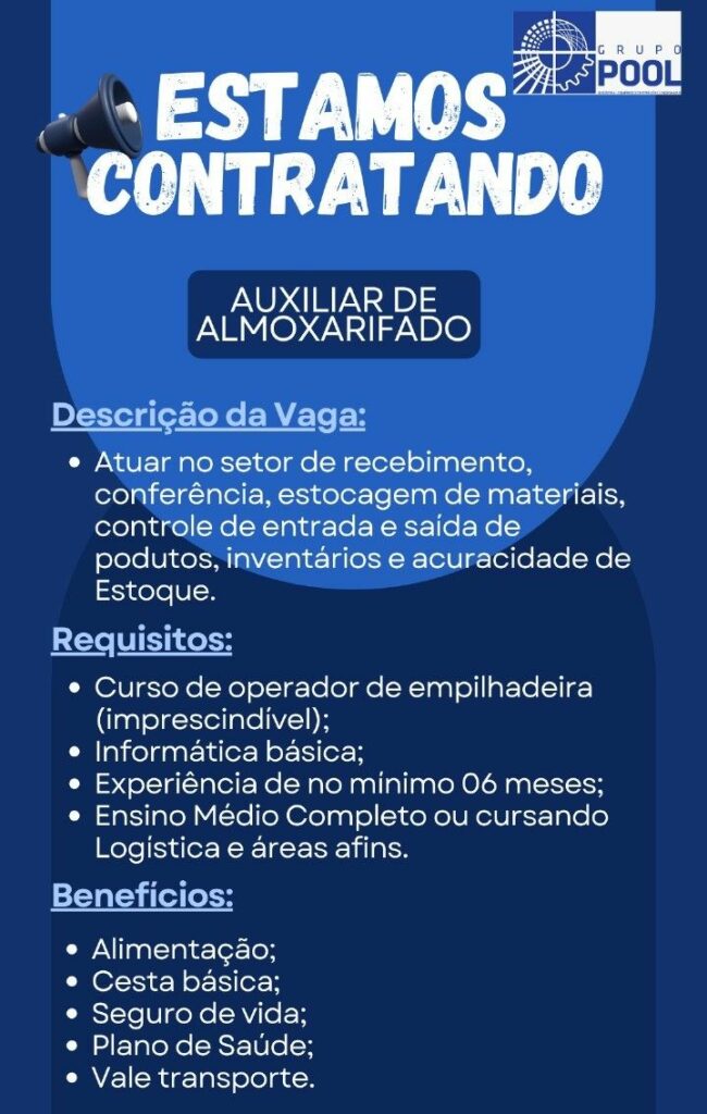 Grupo Pool está selecionando Ajudante operacional, Auxiliar administrativo; Auxiliar almoxarifado; Envie seu currículo!