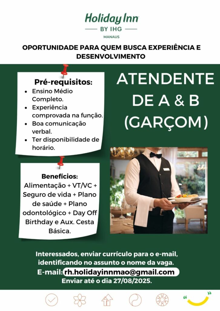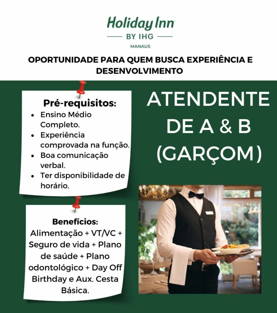 Holiday Inn Hotel está selecionando Atendente de A & B Garçom; Envie seu currículo!