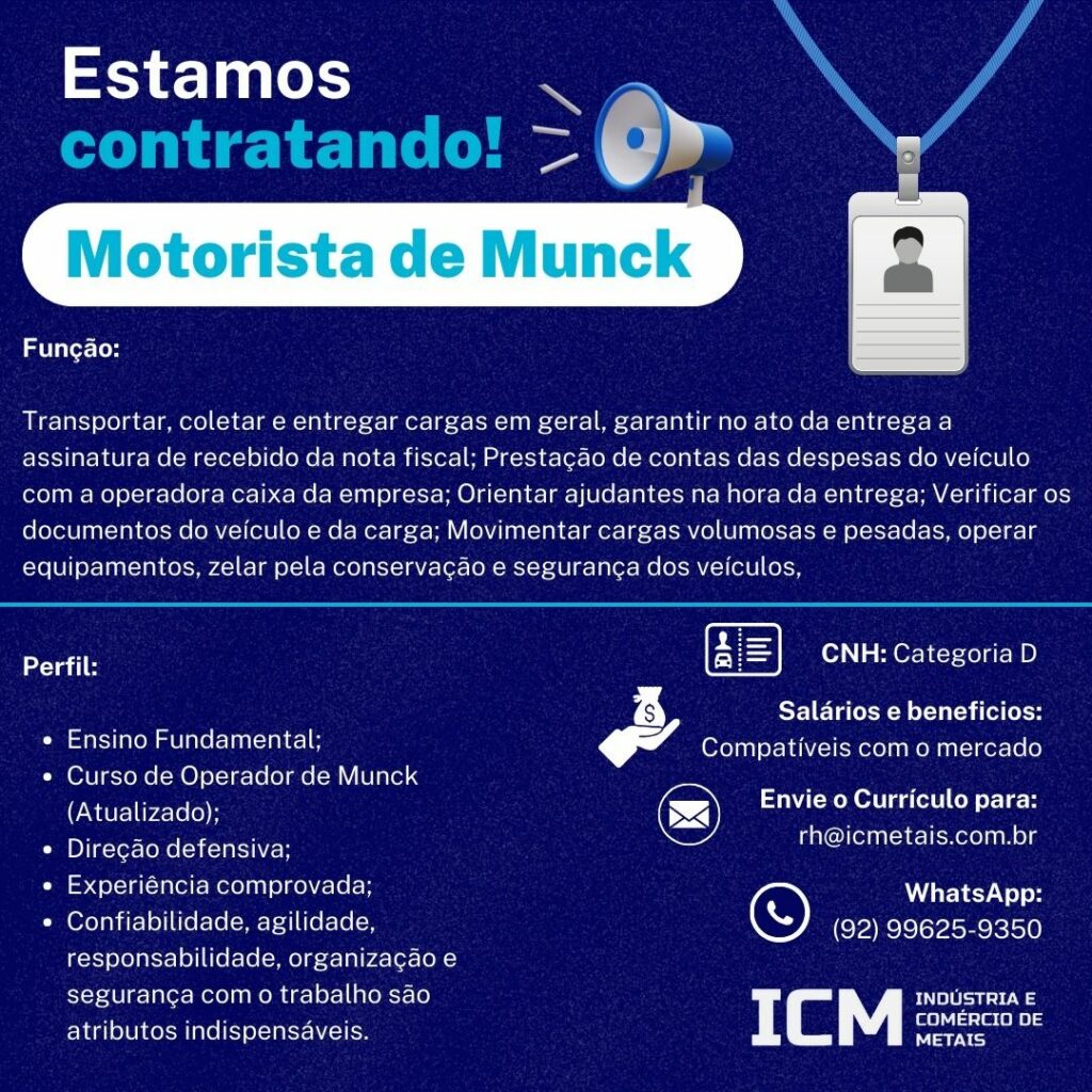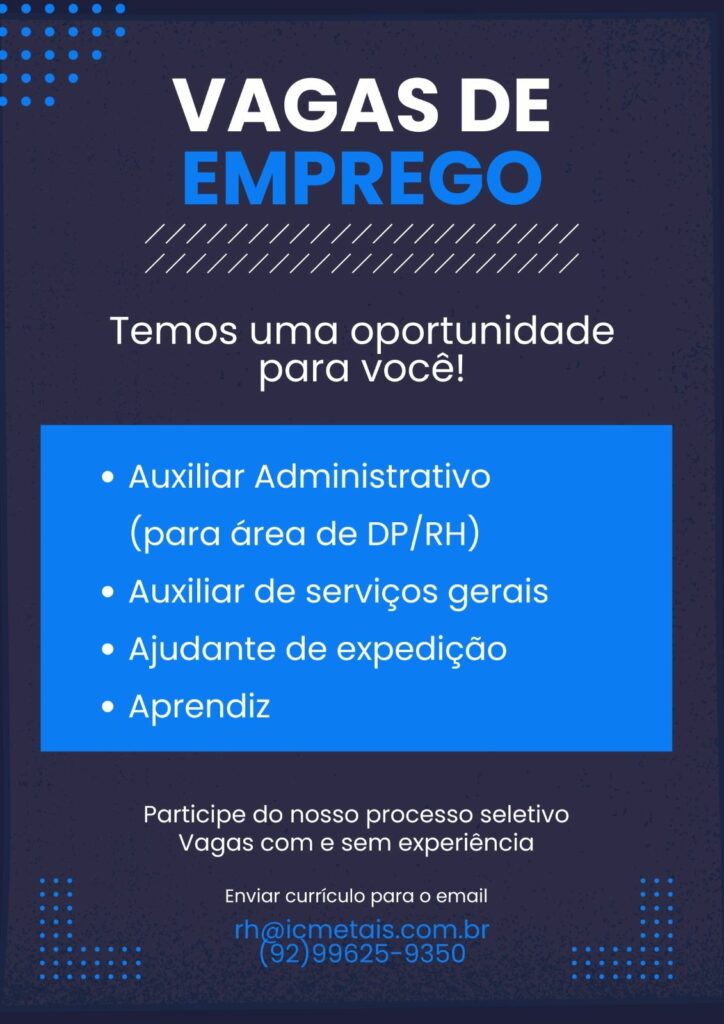 Indústria e comércio de metais seleciona Auxiliar administrativo, Auxiliar de serviços gerais, Ajudante de expedição, Aprendiz, Motorista de munck, Motorista carreteiro, Mecânico de Manuntenção; Envie seu currículo!