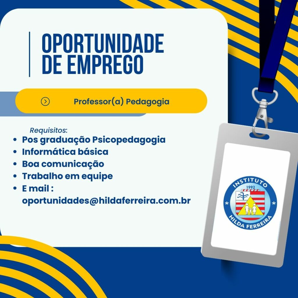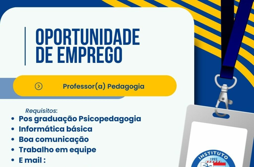 Instituto está selecionando Professor (a) Pedagogia; Envie seu currículo!