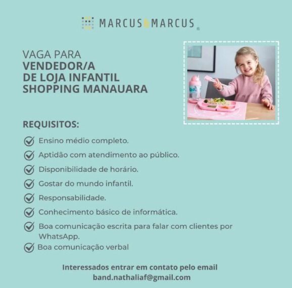 Loja do shopping Manauara está selecionando Vendedor (a); Envie seu currículo!