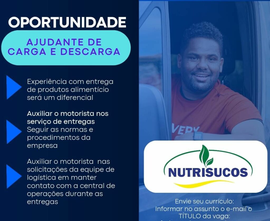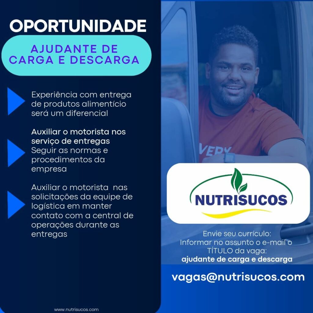 Nutrisucos está selecionando Ajudante de carga e descarga; Envie seu currículo!