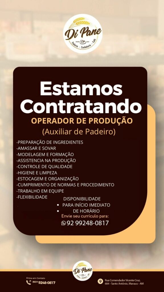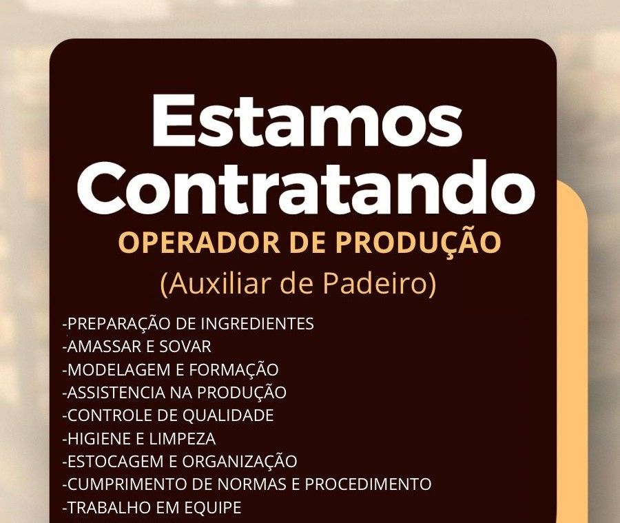 Panificadora está selecionando Operador de produção, Auxiliar de cozinha; Envie seu currículo!