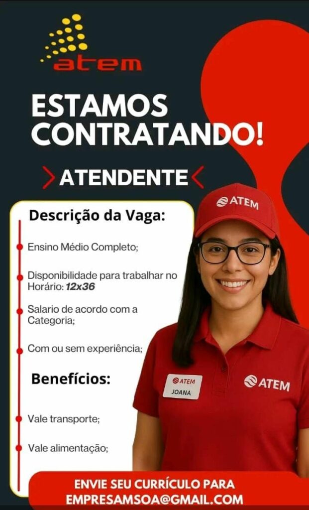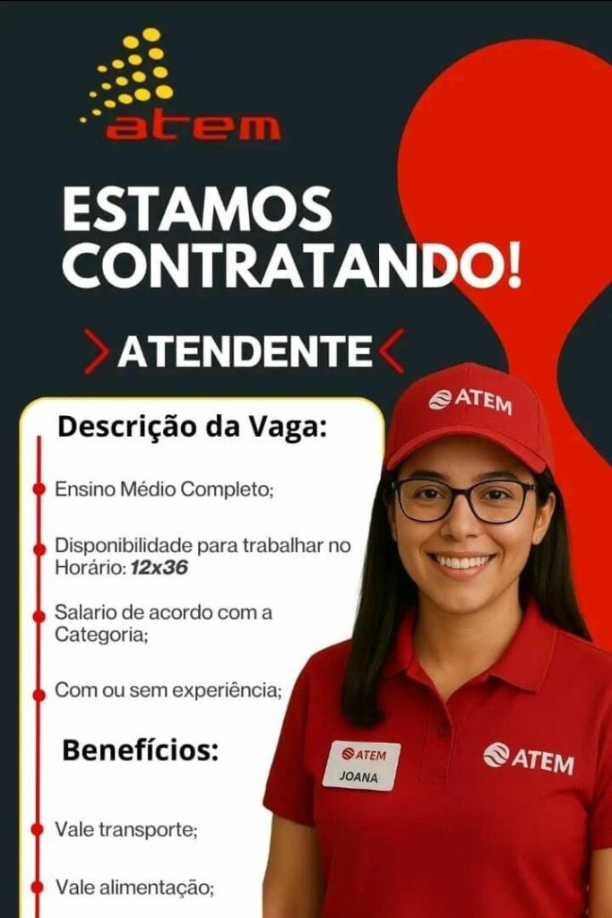 Posto Atem está selecionando Atendente; Envie seu currículo!