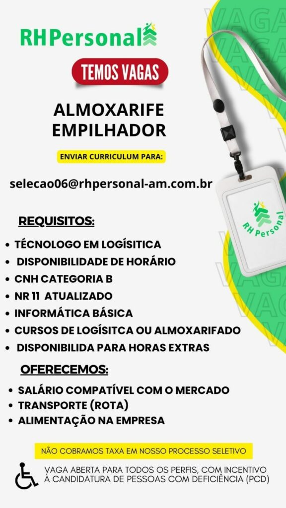Rh está selecionando Almoxarife Empilhador; Envie seu currículo!