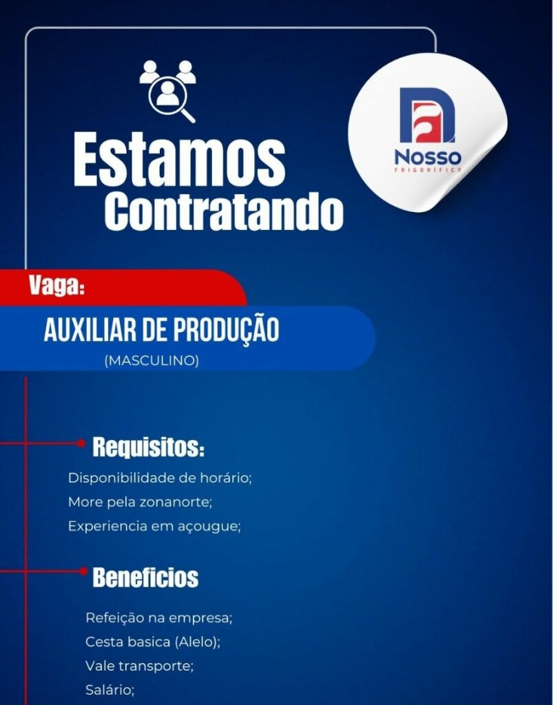Rh está selecionando Auxiliar de produção; Envie seu currículo!