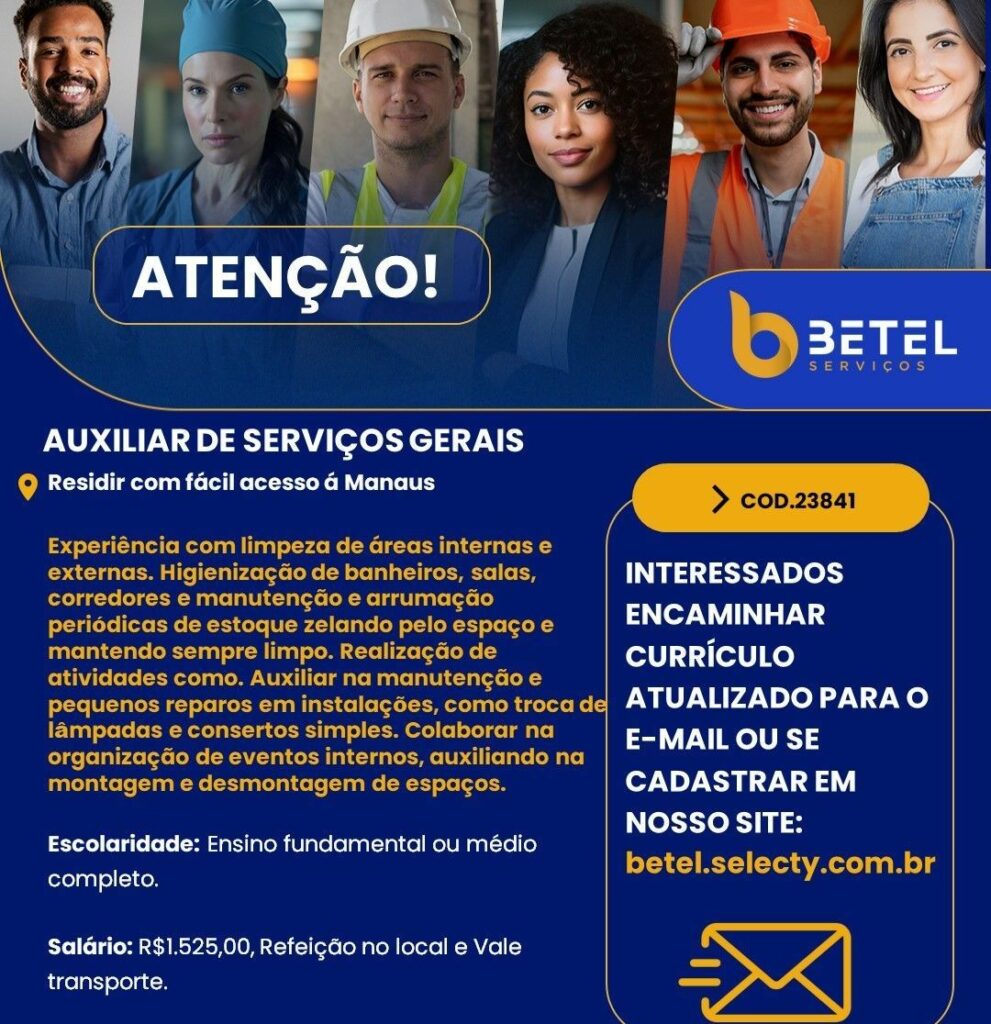 Rh está selecionando Auxiliar de serviços gerais; Envie seu currículo!