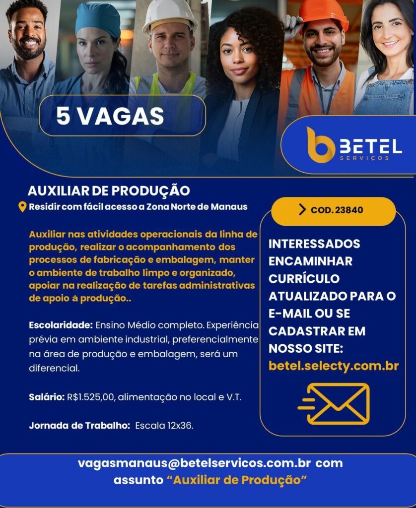 Rh abre seleção para vaga de Auxiliar de produção; Envie seu currículo!